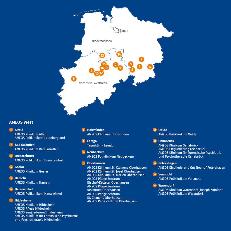 AMEOS Krankenhäuser und Poliklinika (81 Einrichtungen) AMEOS Pflege und Eingliederung (26 Einrichtungen)